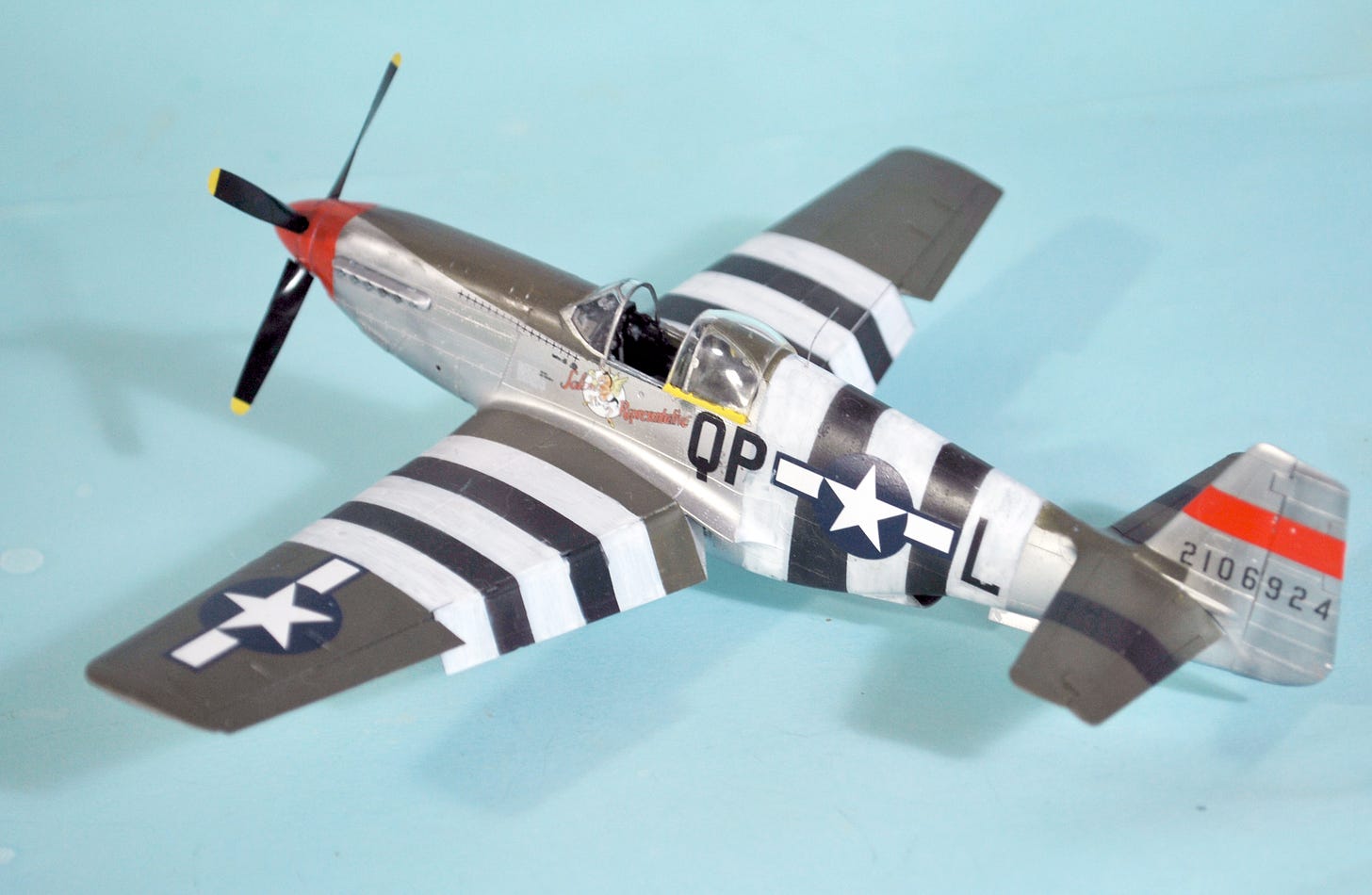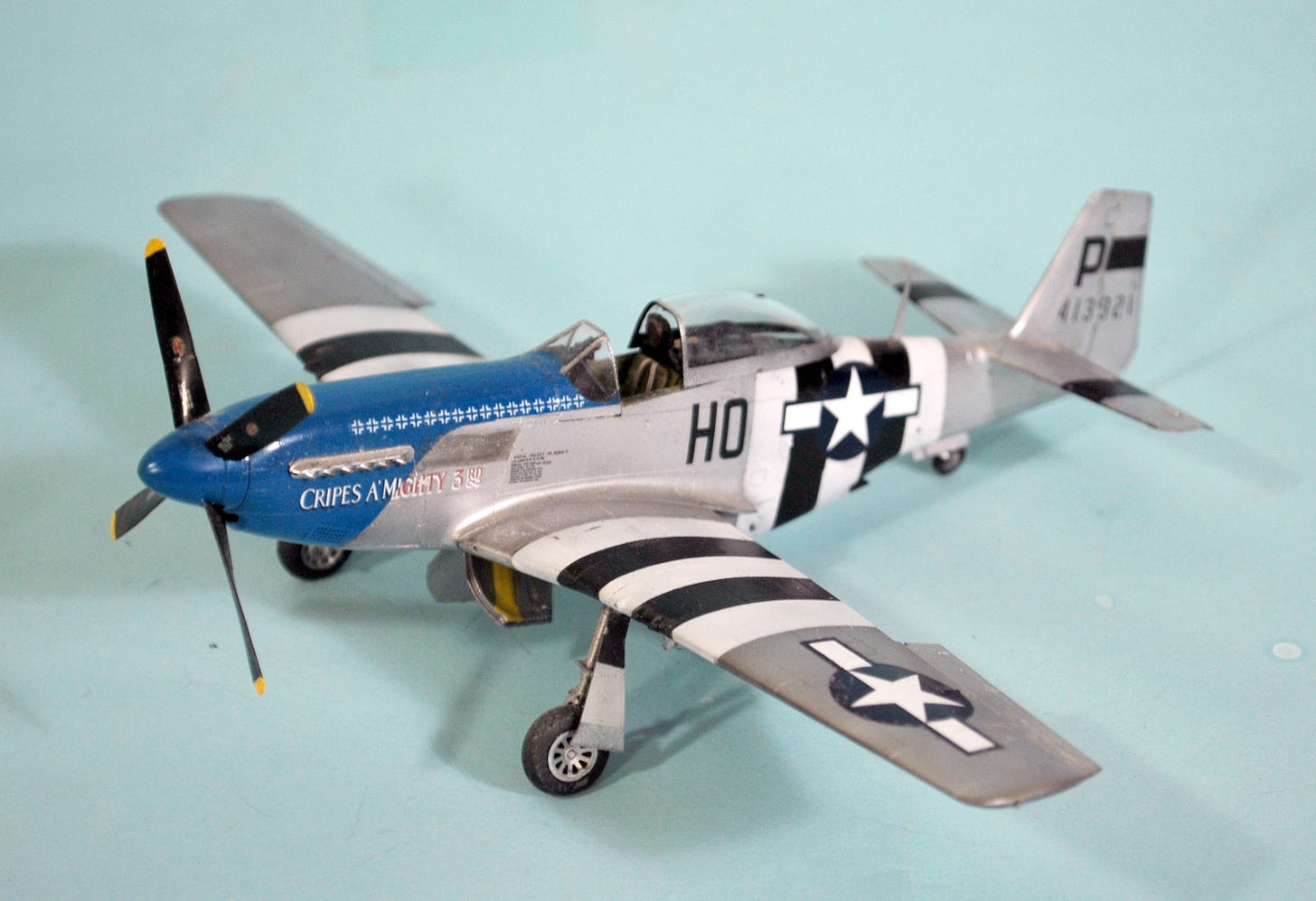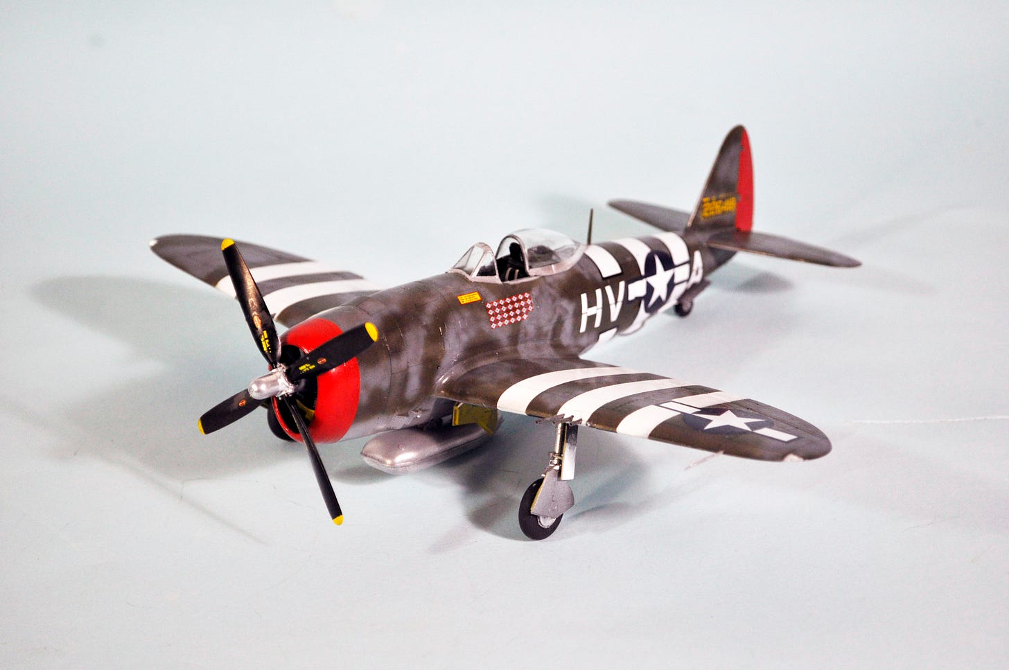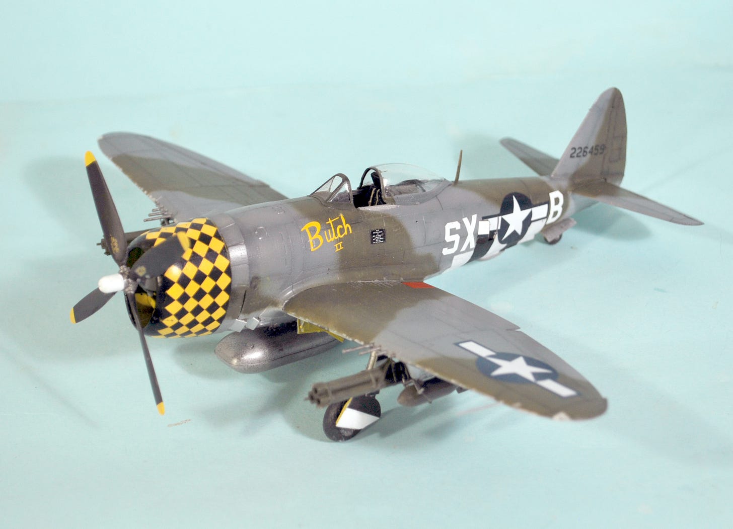 The models are all 1/48 scale. At this period of the war, P-47s and P-51s were being delivered from the factories unpainted. The groups adopted their own camouflage, which was almost a group identification marking as were the noses in group markings.