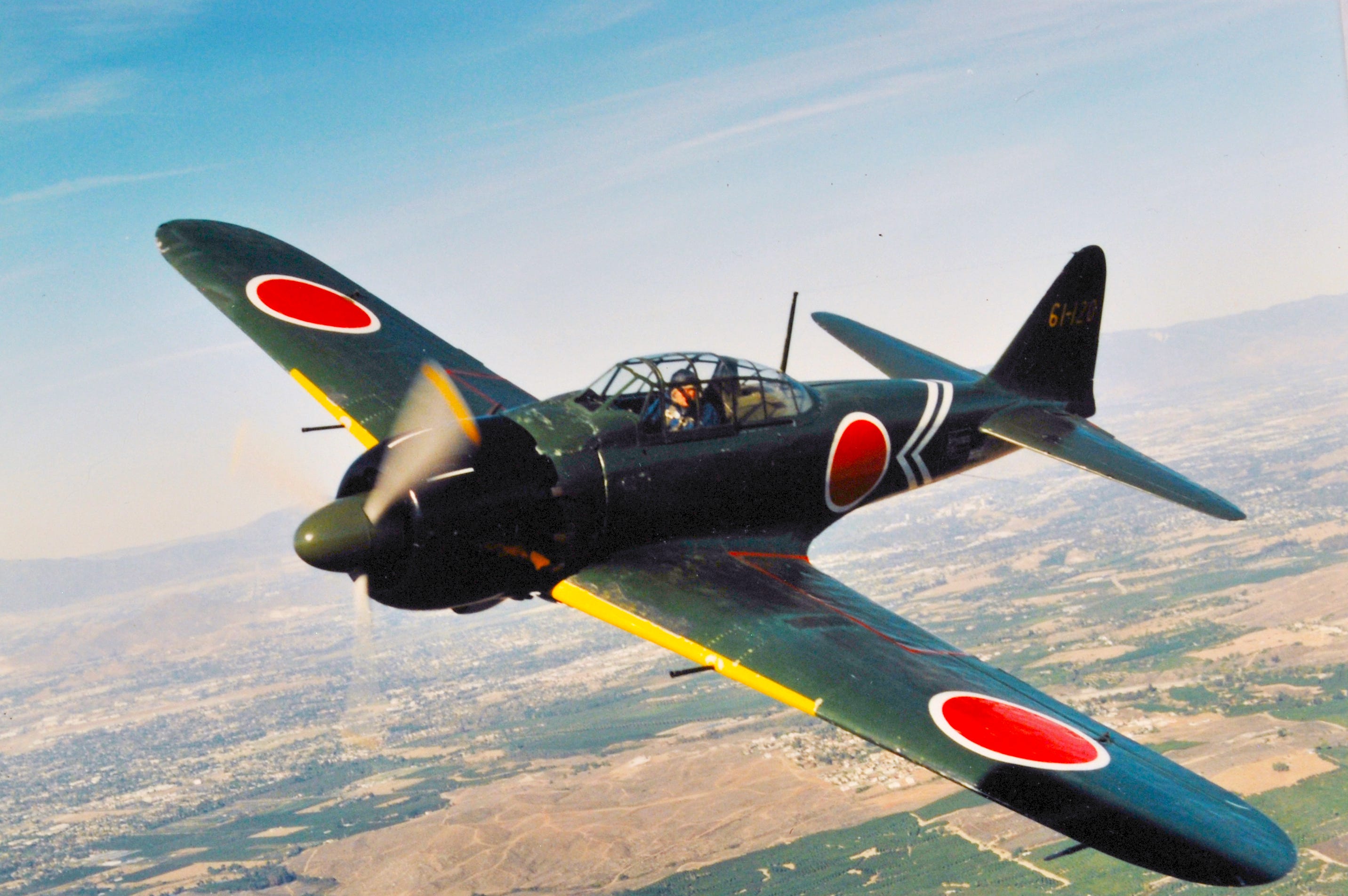 This is the only completely-original Japanese Zero left in the world. It’s an A6M5 that was captured on Saipan in June 1944 and returned to the US. It was flown at the Fighter Conference that October by every test pilot who was there, each of whom signed the logbook, including Charles A. Lindbergh. Ed Maloney retrieved the airplane in 1959 when the mechanic’s school at the old Gendale Grand Central Airport was closed to make way for Interstate 5. This Zero, the P-47, the F6F-3, an early P-51A Mustang, and the only original German Me-262 that didn’t have its main spar cut, were being used as “instructional airframes.” It took 50 years till the me-262 flew, but all of them were restored to flying status.