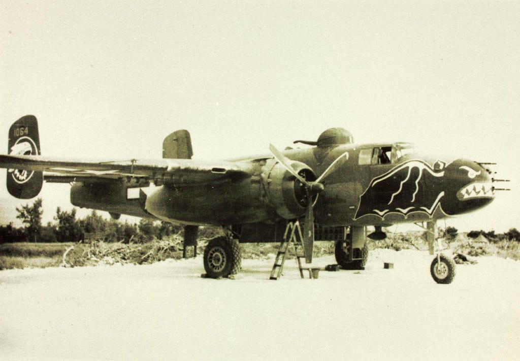 The dawn sky over Kyushu, southernmost island of the Japanese Home Islands, was clear on August 25, 1945, as Major Jack McClure of the 498th "Falcons" Bomb Squadron and Major Wendell Decker of the 499th "Bats Outta Hell" Bomb Squadron, who was flying in "Betty's Dream," orbited their B-25J Mitchell gunships.