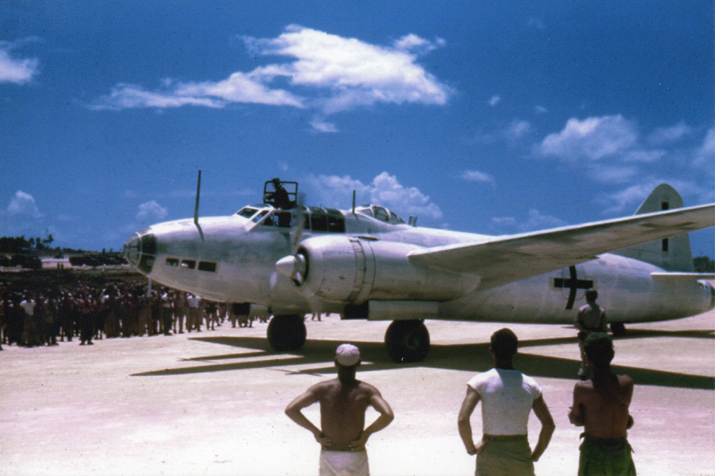 Next morning, August 30, the Japanese agreed to have American 100 octane fuel mixed with their 87 octane fuel in the remaining Betty. Once again, “Betty’s Dream” was the lead escort. This time, Major Tatelman, the top-ranking pilot in the group in terms of missions flown in two complete combat tours, managed to get himself assigned as copilot to his friend Wendell Decker. “After everything I had gone through in the Pacific, there was no way I was going to miss this,” he later recalled.