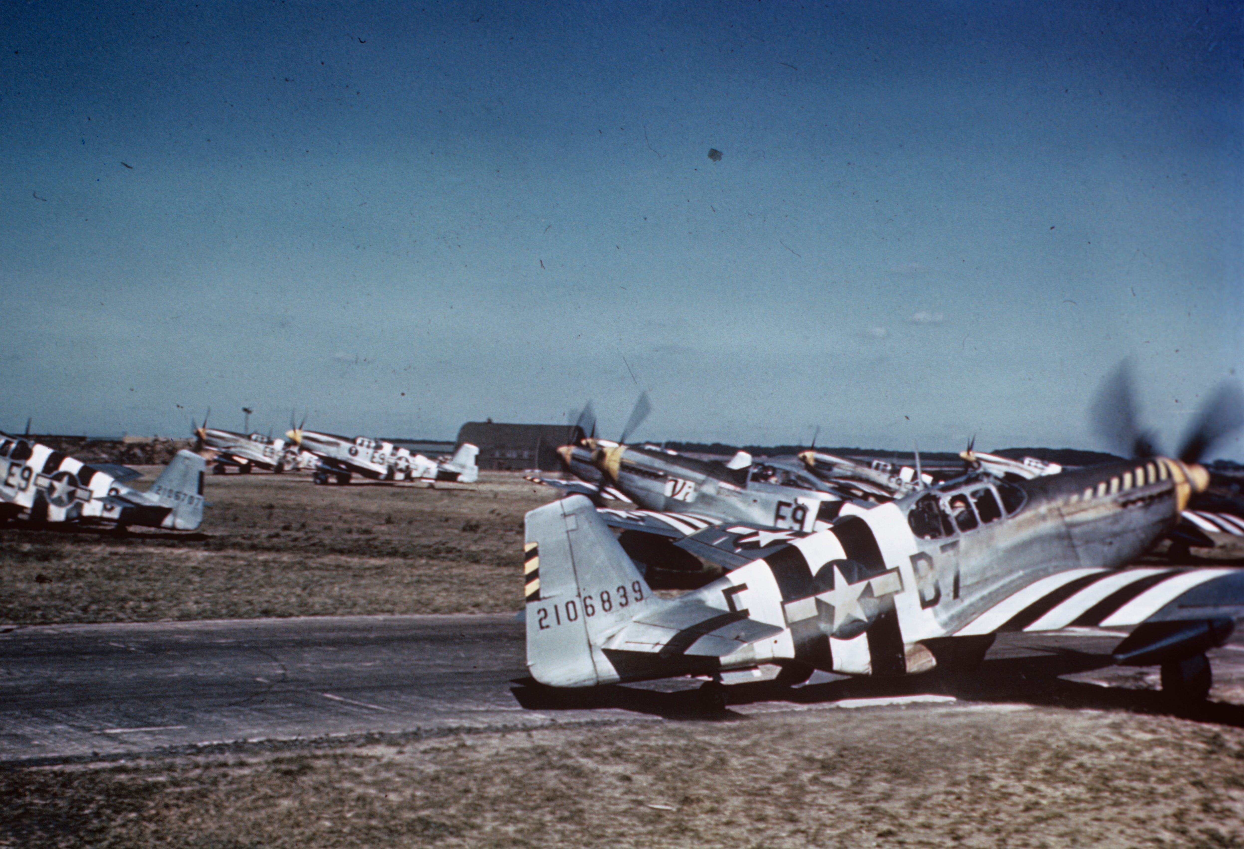 P-51 Mustangs of the 361st Fighter Group prepare for takeoff on D-Day