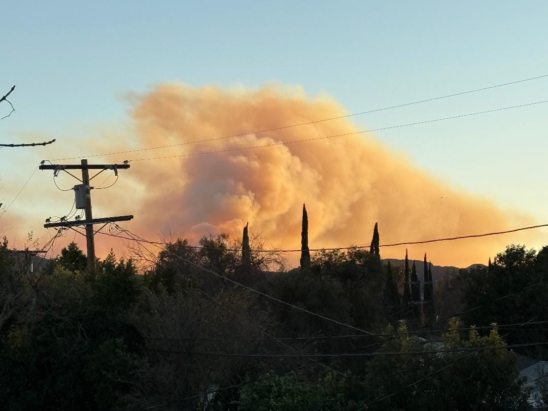 This photo was taken at 5pm from the roof of my neighbor across the street. This is smoke from the Palisades Fire, which spread today into Mandeville Canyon, 5 miles south of us.