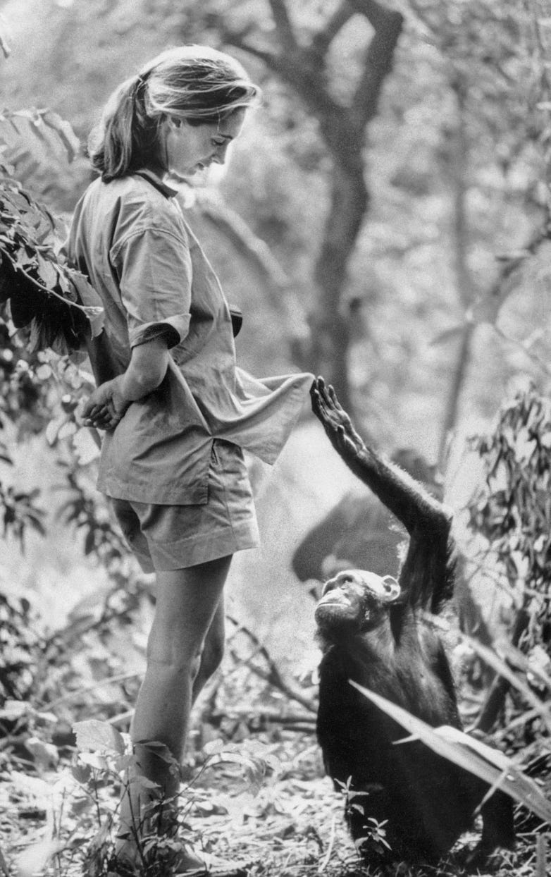 It breaks my heart to make this news today’s lead: Jane Goodall, whose lifelong work as a primatologist helped broaden the world’s understanding of animal behavior and emotions, died yesterday at age 91. Her field studies with chimpanzees not only broke barriers for women and changed the way scientists study animals, but documented emotions and personality traits within these primates that blurred the line between humans and the animal kingdom. Goodall arrived in Tanzania’s Gombe Stream Chimpanzee Reserve in 1960 at the request of her boss, renowned anthropologist and paleontologist Dr. Louis Leakey. There, the 26-year-old who had long been fascinated with Africa and its animals – but had no formal higher education – began her groundbreaking work observing and studying these intellectual primates in their natural habitat.At first, the chimps ran away from her. That changed when she met an older chimp she named David Graybeard. After following David through the forest, she offered him a palm nut. “He took the nut, he dropped it, but very gently squeezed my fingers,” Goodall recalled. “That’s how chimpanzees reassure each other. So in that moment, we communicated in a way that must have predated human language.” According to her institute, she passed away due to natural causes in California during a speaking tour. All the great men - who it turned out didn’t know shit from shinola - were forced to stand in awe of a woman who thought becoming part of a community was the way to understand our similarities across boundaries. Further proof of why I wish women ran the world. The only “dumb animals” on this planet are us.